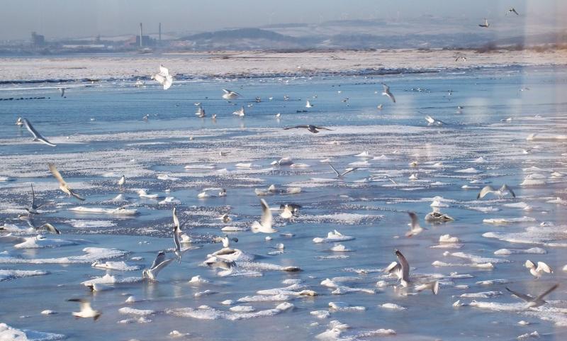 Gulls Contending With Ice - B - L
