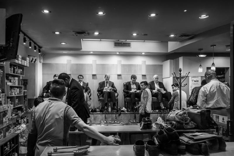 Great image Fiona, didn't realise that "shoeshine" places existed! All business men on their break, two are still on their phones though! are they working or catching up with the latest "chat" - love it.