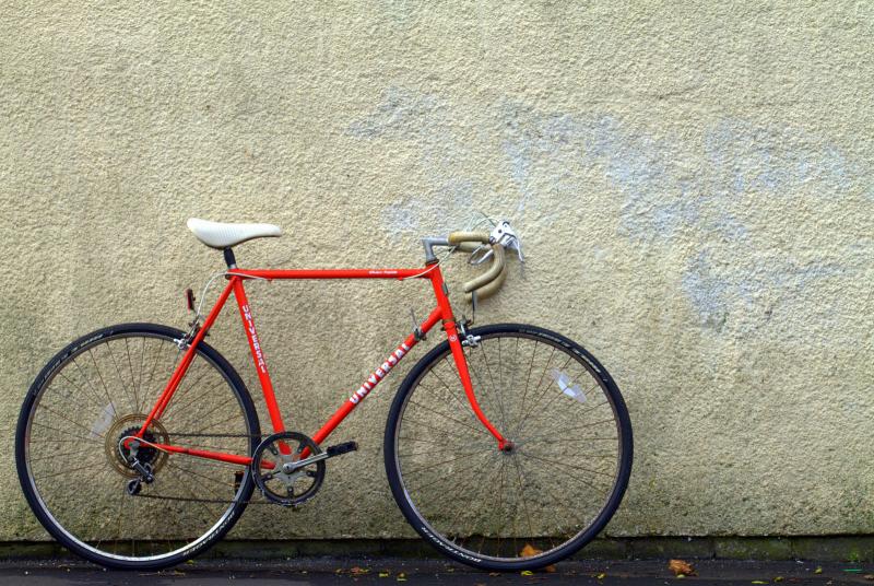 Orange bike against a wall