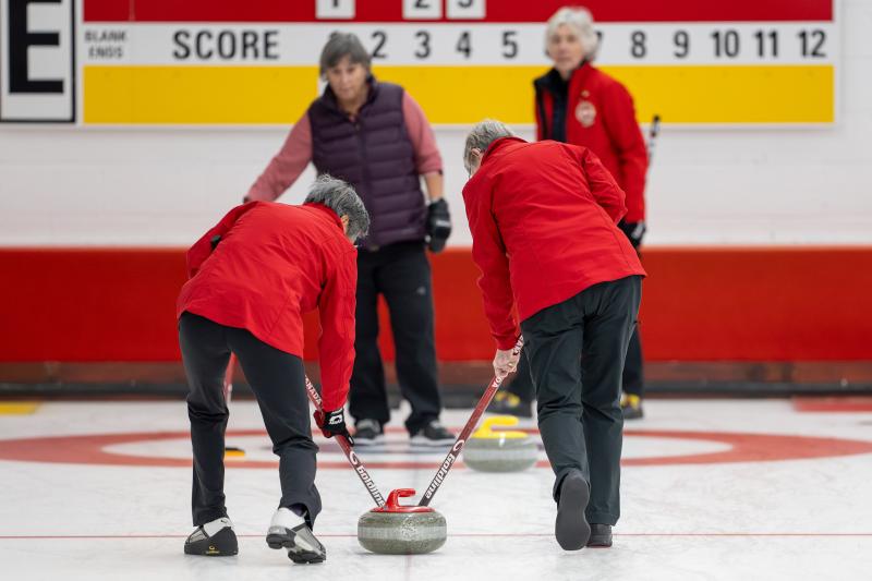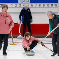Fiona Wallace, David Bell and Donnie Briggs stepped up to the hog lines to capture the action at the Greenacres leg of a friendship tour of Scotland by a visiting Canadian ladies’ team.