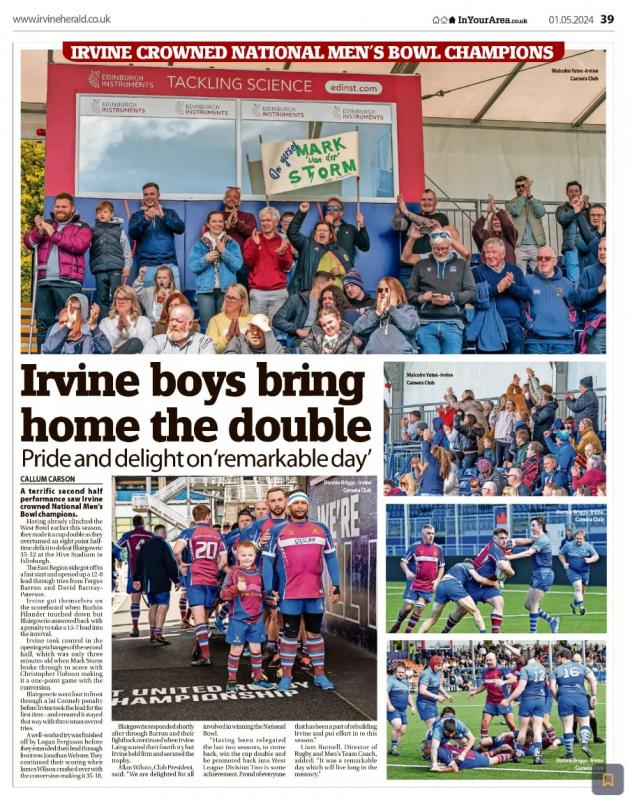 In the Herald - Irvine Rugby Club - Bowl Final