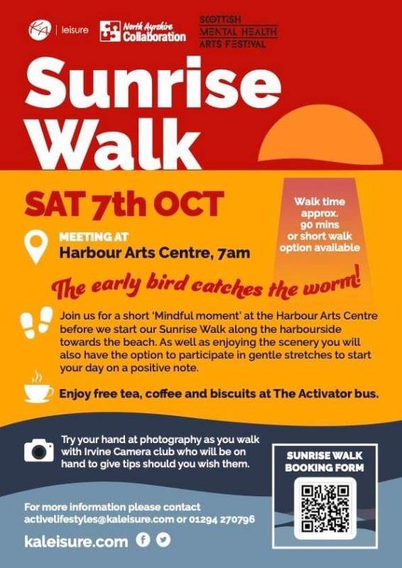 In our ongoing work with Mental Health Awareness and the Scottish Mental Health Arts Festival, we are looking for volunteers to come along on the Sunrise Walk, Saturday 7th October.