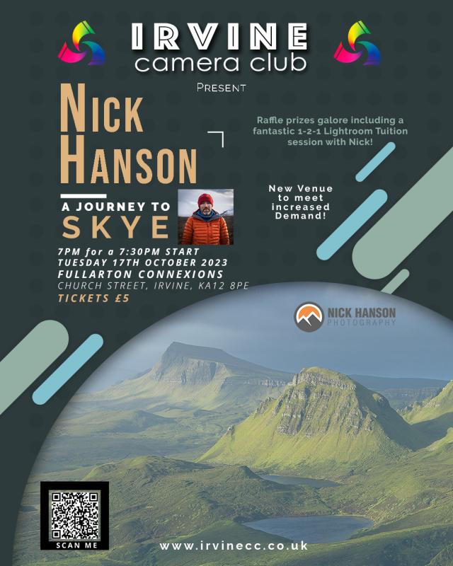 Rearranged From 14th March - Our 2023 Keynote Speaker is award winning Landscape Photographer Nick Hanson. TICKETS ON SALE NOW - just £5
